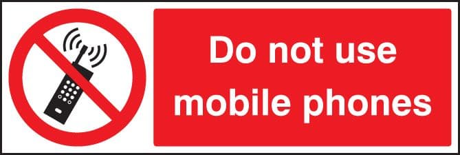 13607M Do not use mobile phones Rigid Plastic (600x200mm) Safety Sign