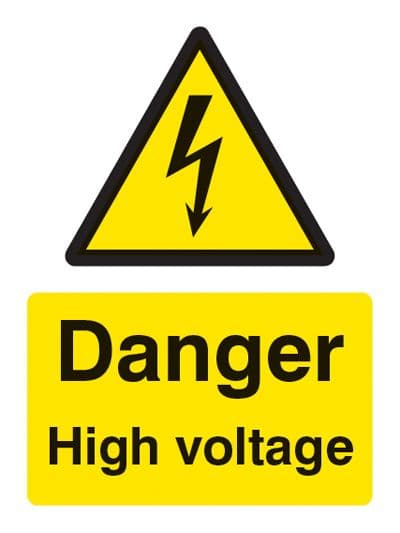 Warning signs are displayed to advise and forewarn of electrical hazards. Material: Rigid Plastic
