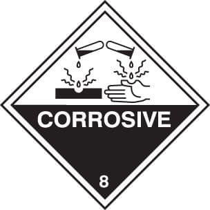 UN regulations (including ADR, IATA and IMDG) stipulate that all dangerous goods must be clearly identified. Diamonds (other than those of class 7 radioactive status) and the insert of any text (other than UN class number) below the symbol is to be confined to particulars indicating the nature of the risk and precautions to be followed during handling of them. Text to signify the nature of the risk is optional. Material: Rigid Plastic