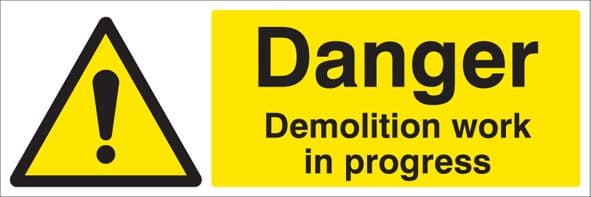 16403M Danger demolition work in progress Rigid Plastic (600x200mm) Safety Sign