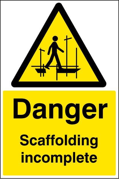 16442P Danger scaffolding incomplete Rigid Plastic (600x400mm) Safety Sign