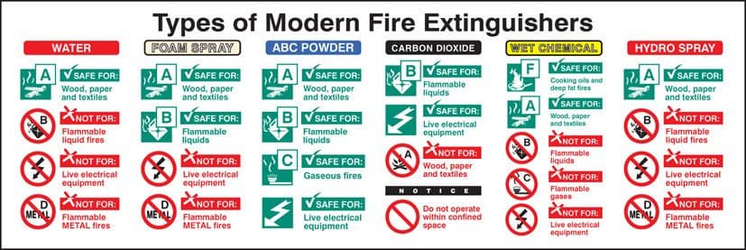 21226L Types of modern fire extinguishers Self Adhesive Vinyl (450x150mm) Safety Sign