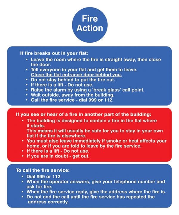 21438E Fire action notice (stay put) for flats Self Adhesive Vinyl (200x150mm) Safety Sign