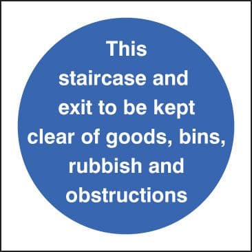 21601F Staircase & exit to kept clear of goods etc Self Adhesive Vinyl (200x200mm) Safety Sign