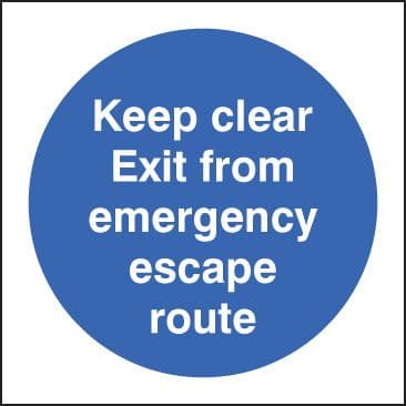 21604F Keep clear exit from emergency escape route Self Adhesive Vinyl (200x200mm) Safety Sign