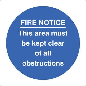 21613F Fire notice this area must be kept clear of obstructions Self Adhesive Vinyl (200x200mm)
