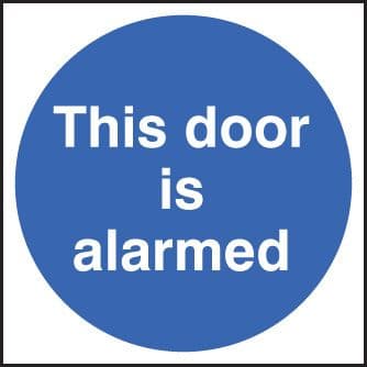 21706U This door is alarmed Self Adhesive Vinyl (100x100mm) Safety Sign