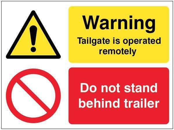21813E Warning Tailgate is operated remotely Do not stand behind trailer Safety Sign