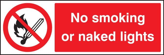 Prohibition signs relating to smoking and naked lights Material: Self Adhesive Vinyl