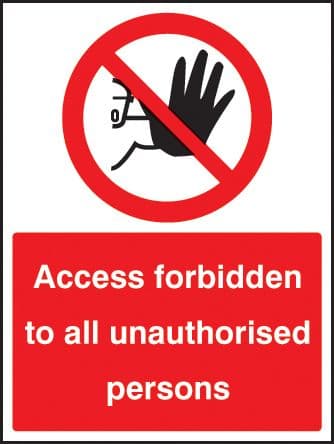23212K Access forbidden to all unauthorised persons Self Adhesive Vinyl (400x300mm) Safety Sign