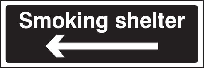 23257G Smoking shelter left arrow (white/black) Self Adhesive Vinyl (300x100mm) Safety Sign