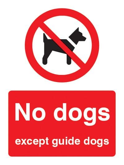 23603K No dogs except guide dogs Self Adhesive Vinyl (400x300mm) Safety Sign