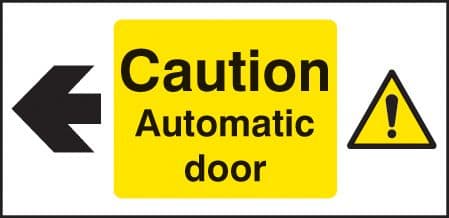 24130X Caution automatic door left Self Adhesive Vinyl (200x100mm) Safety Sign