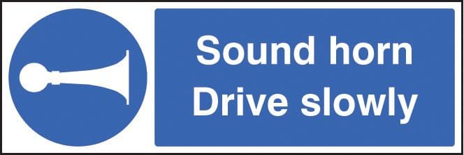 25413M Sound horn drive slowly Self Adhesive Vinyl (600x200mm) Safety Sign