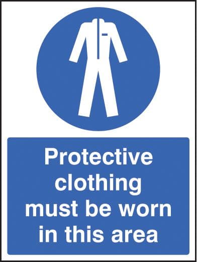 25603E Protective clothing must be worn in area Self Adhesive Vinyl (200x150mm) Safety Sign