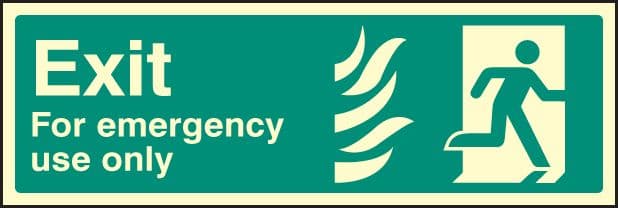 Some hospitals and health services still display fire exit signs with flames (in accordance with the superseded Hospital Technical Memorandum 65). NHS organisations are now expected to comply with the standard ISO 7010 signage. Material: Photoluminescent Rigid
