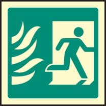 Some hospitals and health services still display fire exit signs with flames (in accordance with the superseded Hospital Technical Memorandum 65). NHS organisations are now expected to comply with the standard ISO 7010 signage. Material: Photoluminescent Rigid