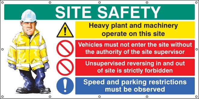 55084 Site Safety banner (as 6415) c/w eyelets (2440x1270mm) Safety Sign