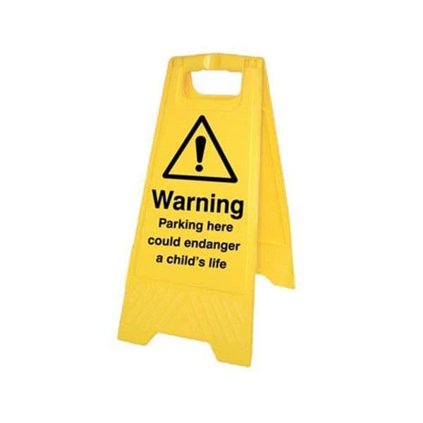 Description: Parking here could endanger a child's life (free-standing floor sign)