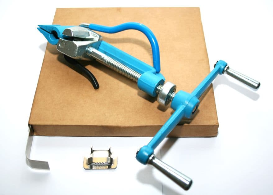Has a tensioning capability of 2,400lbs and a built-in cutter. Permanent lubrication of the tension screw extends tool life and speed of clamping; For use with banding straps and buckles; Supplied with instructions for use