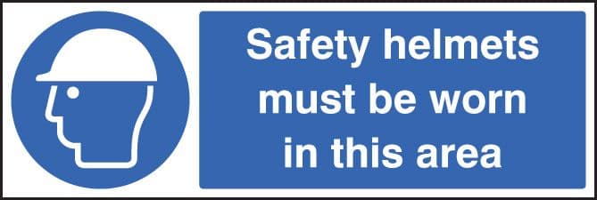 85016G Safety helmets must be worn beyond this point (300x100mm) Rigid PVC with SAV Backing