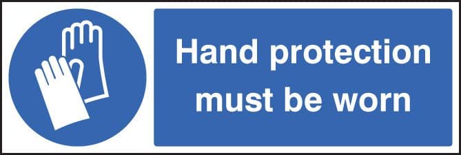 85203G Hand protection must be worn (300x100mm) Rigid PVC with SAV Backing Safety Sign